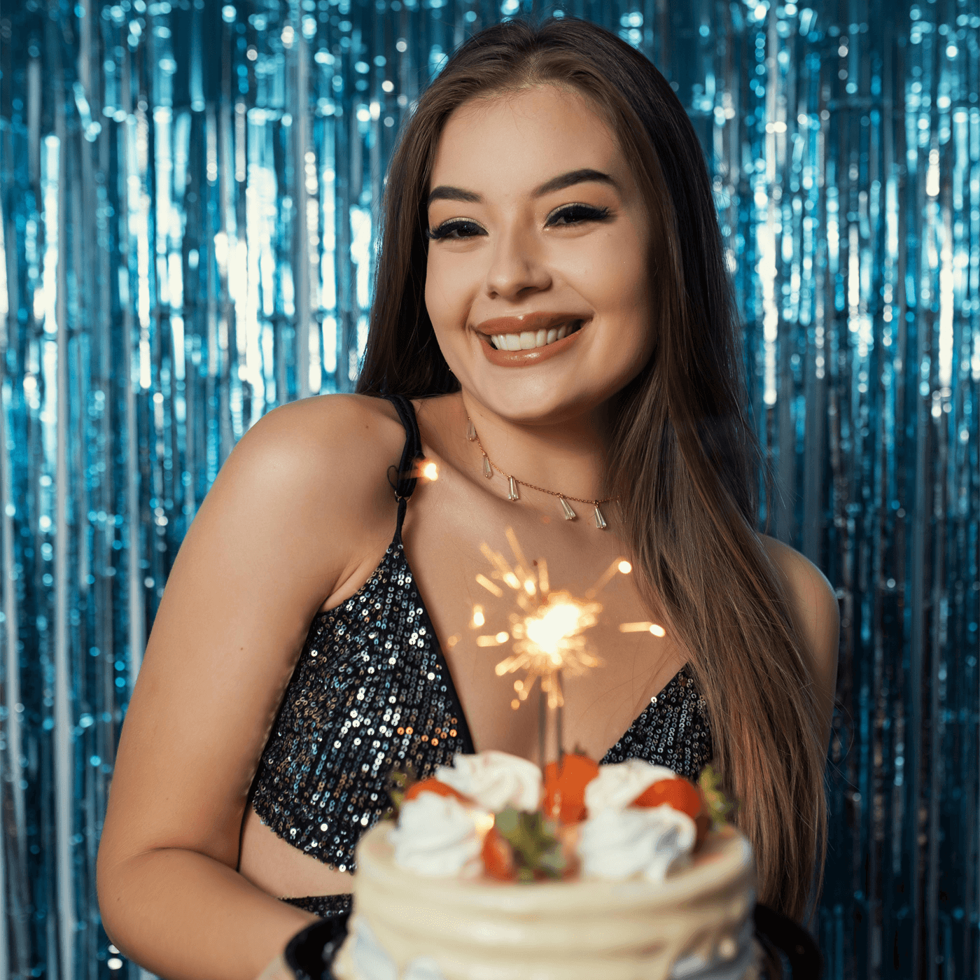 Perfect for birthdays, engagements, or medium-sized events. This versatile option allows small group photos while keeping the tinsel backdrop as the star of the show.